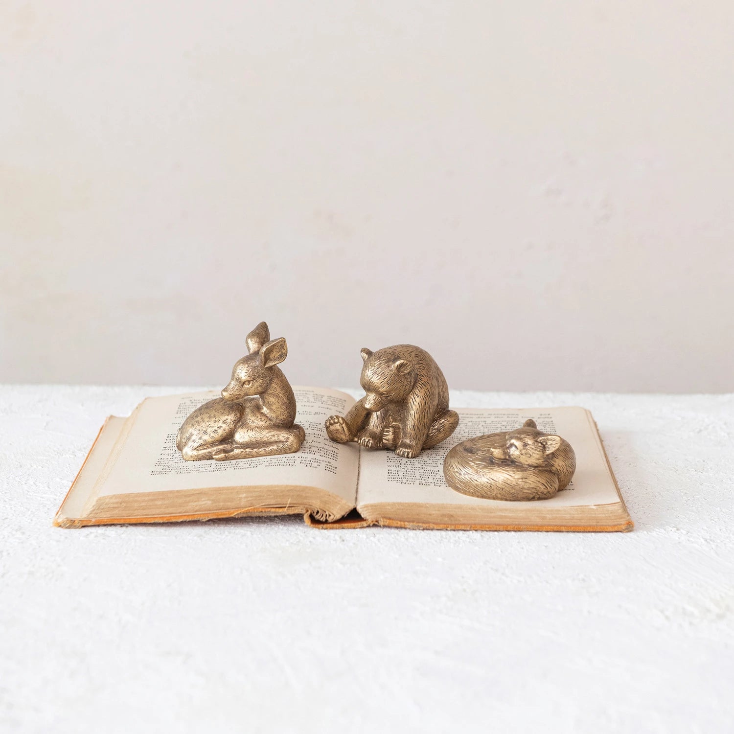 Add a charming touch to your seasonal decor with these Gold Resin Sleepy Animals. Measuring 2.5" x 2.75", their delicate design and warm gold finish make them perfect accents for both fall and Christmas settings. Their subtle elegance enhances any mantel, shelf, or table arrangement, bringing a gentle, cozy vibe to your holiday atmosphere. Durable and finely crafted, these figurines blend festive spirit with timeless style.