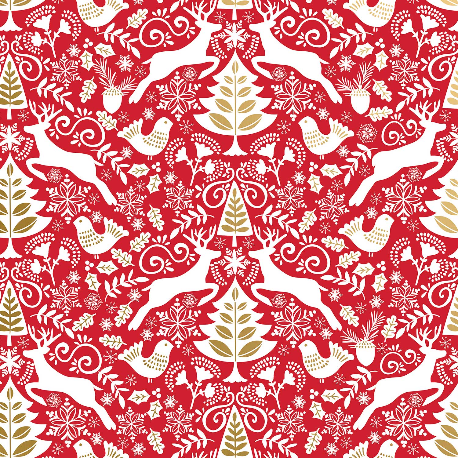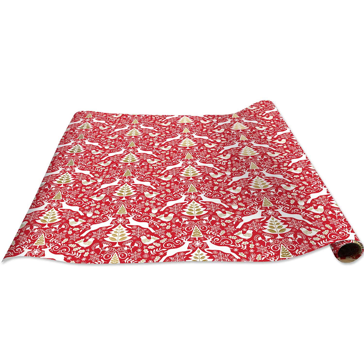 Red Scandanavian Christmas Gift Wrap, 10 ft x 30"