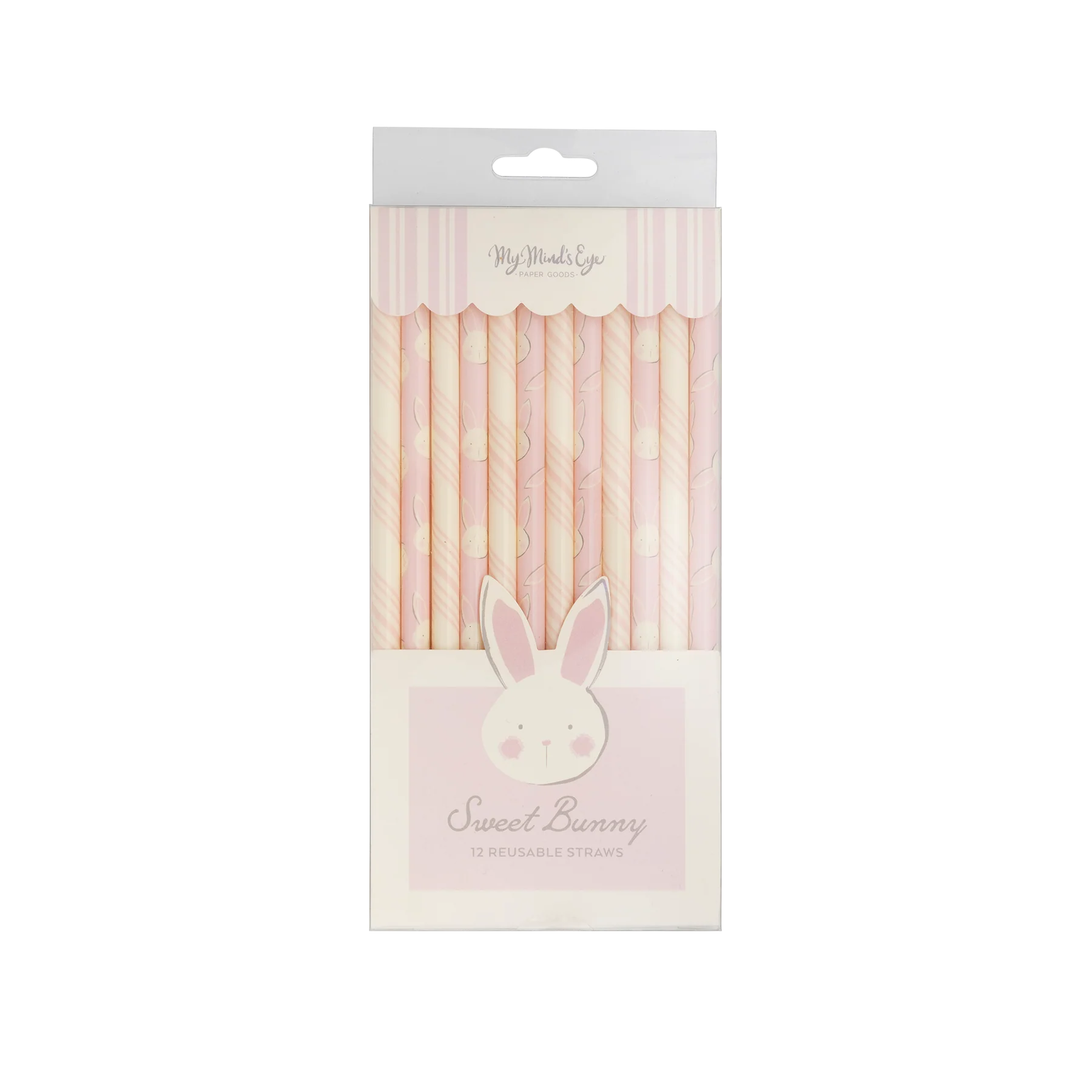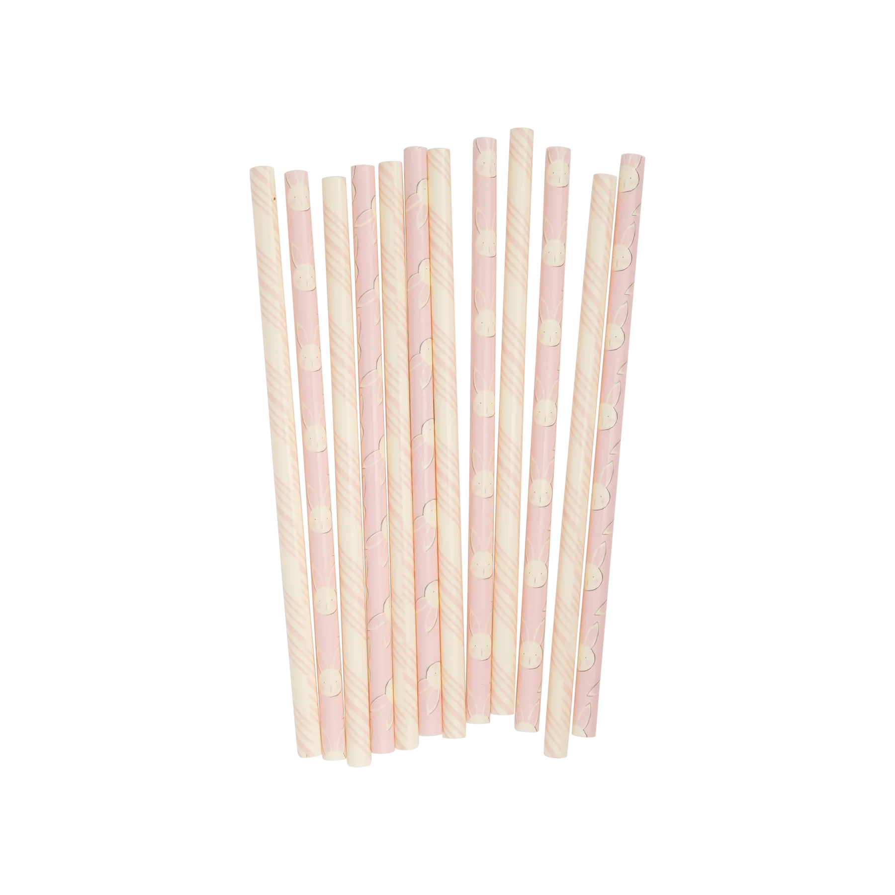 Hop into fun with our adorable Bunny Straws! This set of 12 reusable plastic straws features charming pink bunny designs that transform ordinary drinks into whimsical moments. Each straw measures 8" long with a .33" diameter, fitting perfectly in most cups and tumblers. You'll get 6 straws of each of 2 delightful designs to mix and match. Durable, dishwasher-safe, and endlessly reusable—these straws prove that sustainable sipping can be seriously cute!