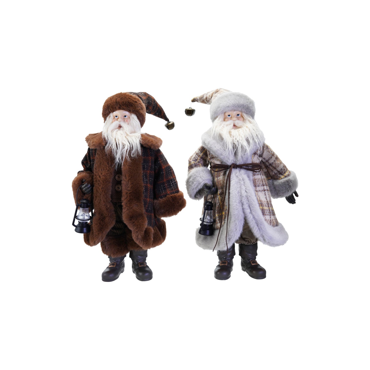 Bring festive charm to your holiday décor with this expertly crafted Santa figurine featuring a faux fur coat and resin construction. Measuring 13-1/4"L x 8-3/4"W x 23-3/4"H, it comes in two styles and vibrant multi-color finishes. The included lantern adds a warm, nostalgic touch, making it a versatile piece for mantel displays or entryway accents. Designed to blend traditional holiday spirit with durable materials, this Santa is both a decorative focal point and a lasting seasonal treasure.