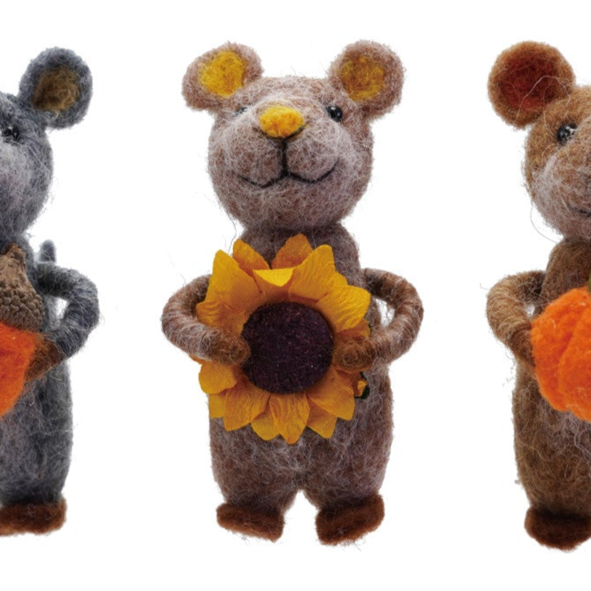 Bring a touch of whimsy to your home with these Handmade Wool Felt Mice, available in three delightful styles: Acorn, Pumpkin, and Sunflower. Each mouse is lovingly crafted from soft wool felt, making them perfect little companions for seasonal fun or everyday charm. Whether perched on a shelf or nestled among your favorite decorations, these playful critters add a dash of cozy personality wherever they go.