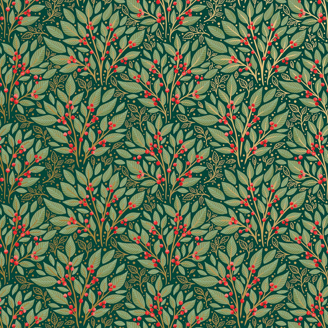 Holly Tapestry Christmas Gift Wrap, 10 ft x 30"