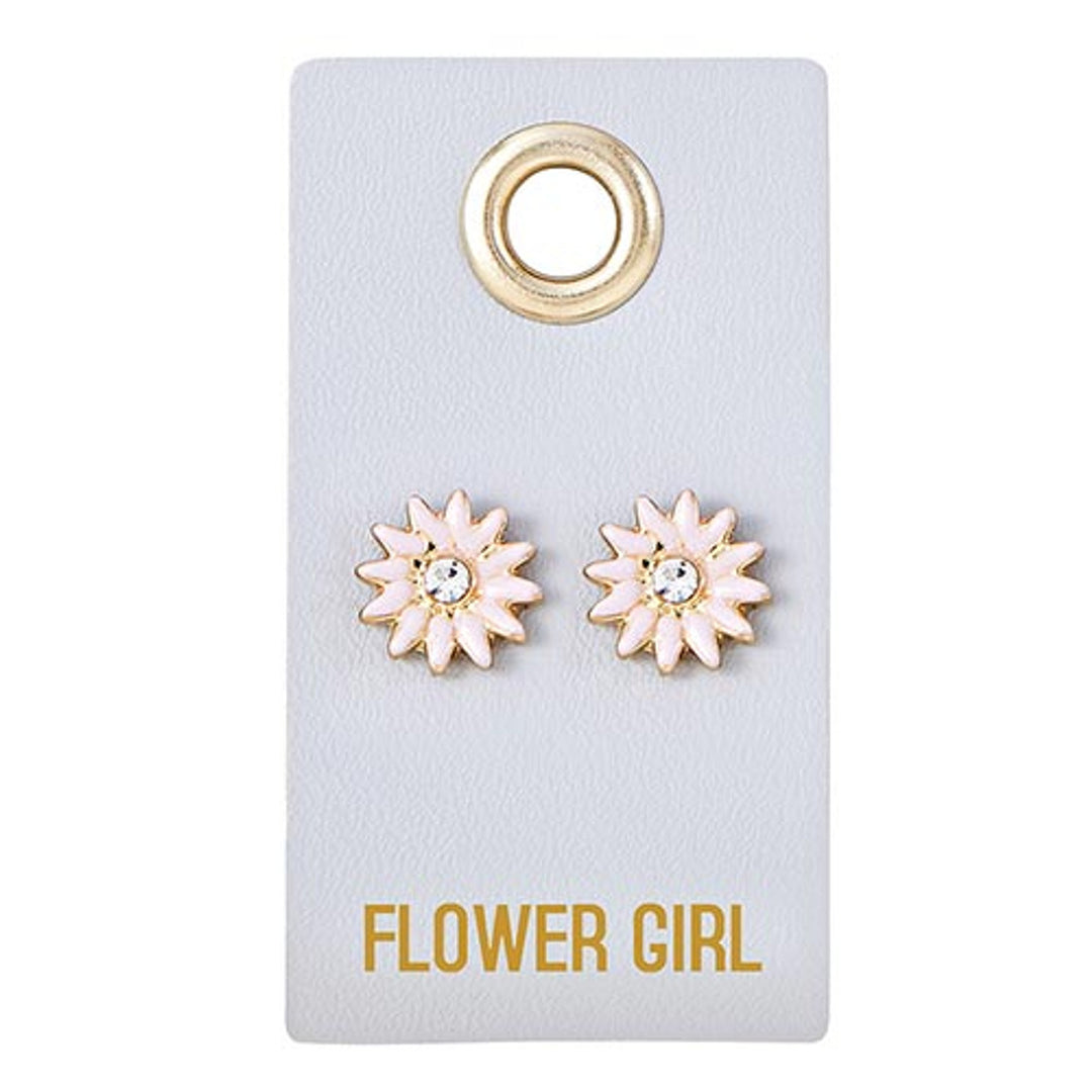 "Flower Girl" Flower Gem Stud Earrings Leather Gift Tag