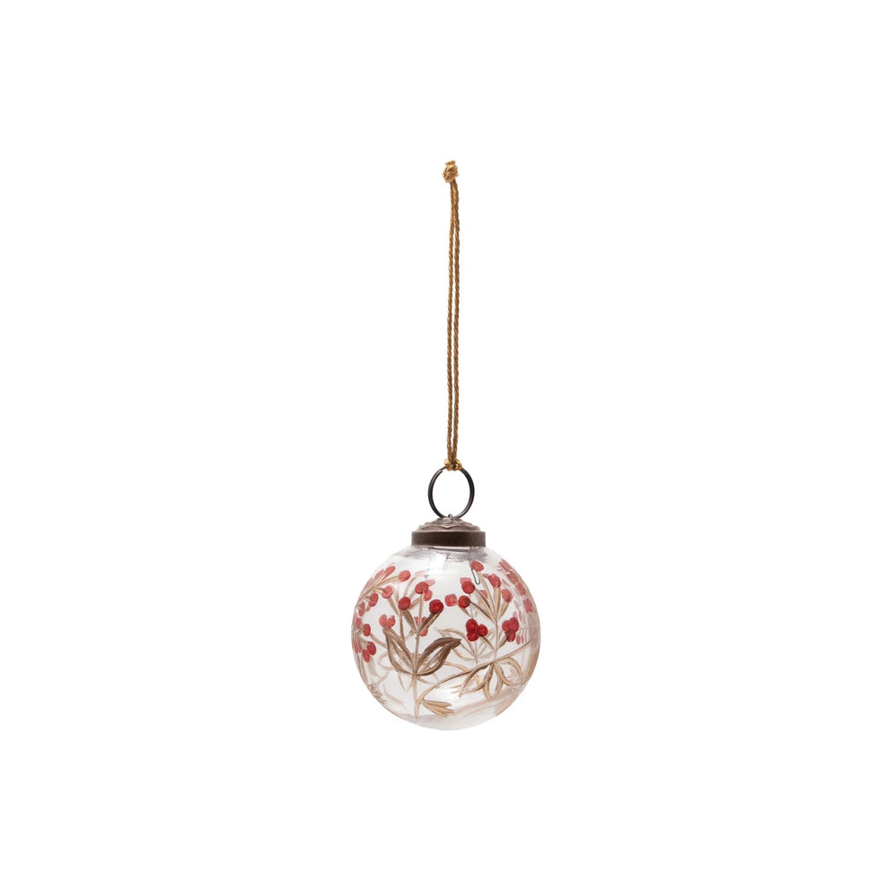 Berry Hand-Painted Etched Glass Ball Ornament