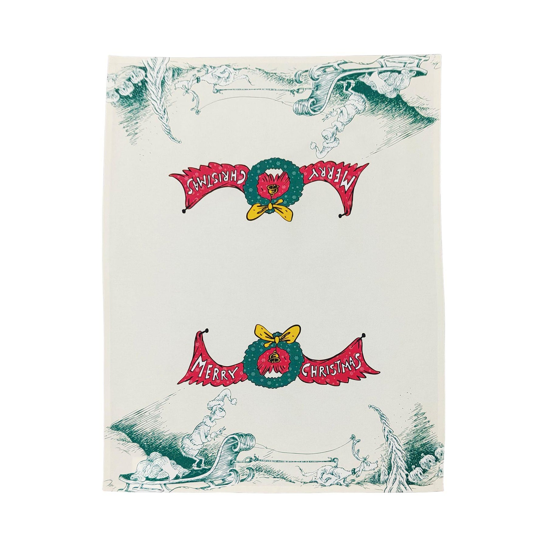 Bring holiday cheer to your kitchen with this vintage-inspired tea towel showcasing beloved Dr. Seuss artwork. The festive Grinch design captures the whimsical spirit of classic Christmas storytelling, making it an ideal accent piece for seasonal décor. Perfect for both functional kitchen use and display, this towel combines nostalgic charm with practical appeal. Whether you're a Dr. Seuss enthusiast or seeking authentic holiday décor, this piece adds character and warmth to any culinary space.
