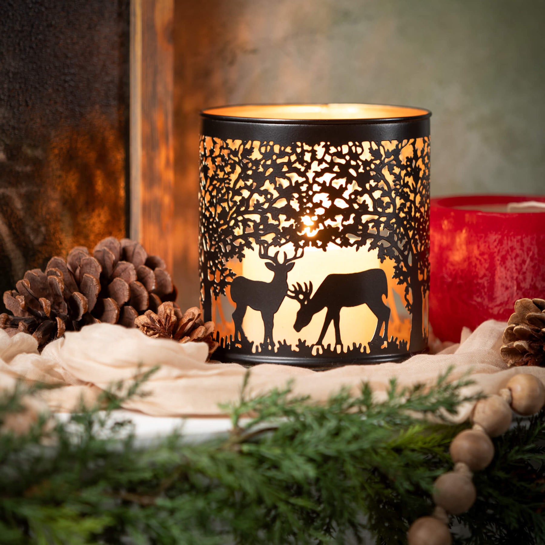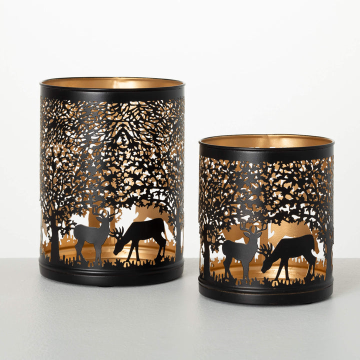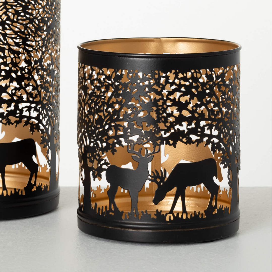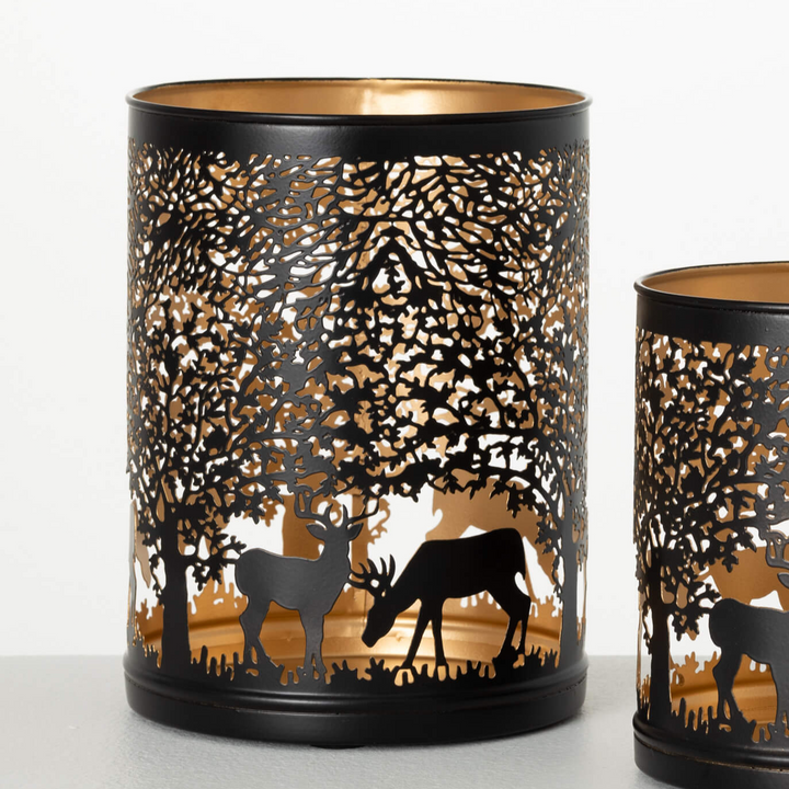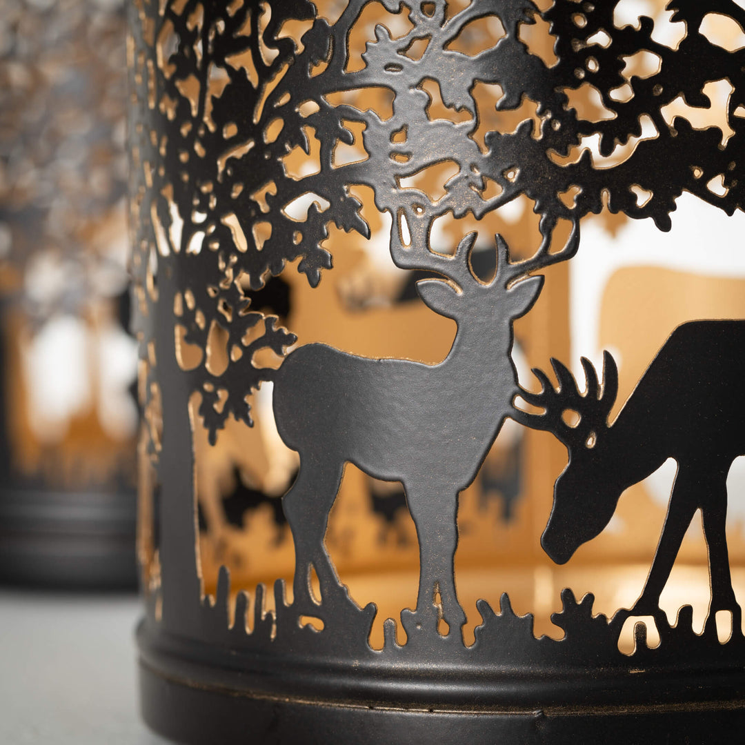 Add a hint of rustic charm to your holiday décor with our Metal Deer Lantern. Standing at 15" tall, this neutral-colored lantern features a deer motif and adds a touch of elegance to any setting. Use as-is or pair with candles and greenery for a cozy, warm ambiance.