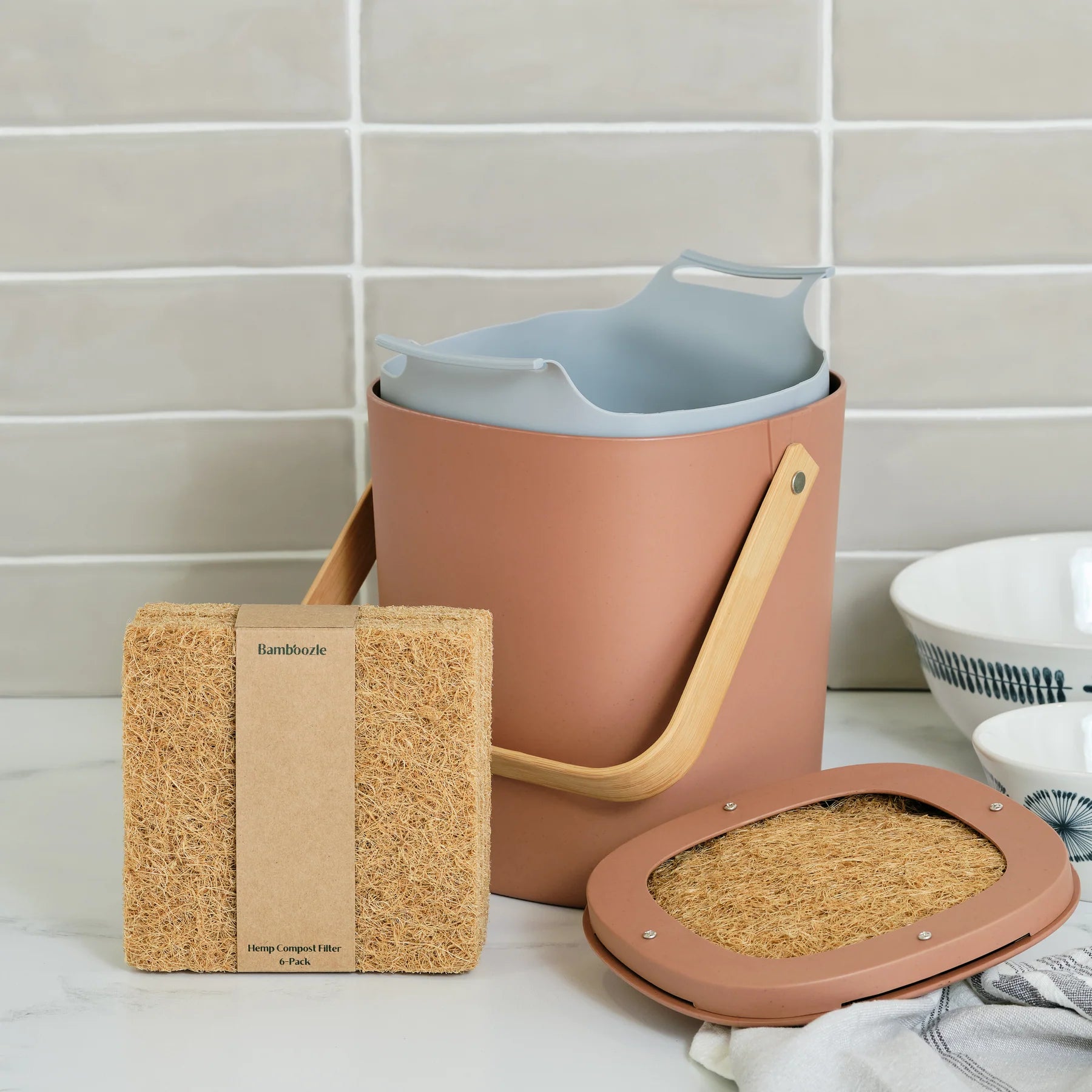Transform your home into a sustainable haven with our Astrik Compost Starter Kit. Our plant-based compost bin and filters work together to eliminate kitchen scrap odors, while the reusable liner provides added convenience. Enjoy easy composting with our compact, dishwasher and microwave safe design.