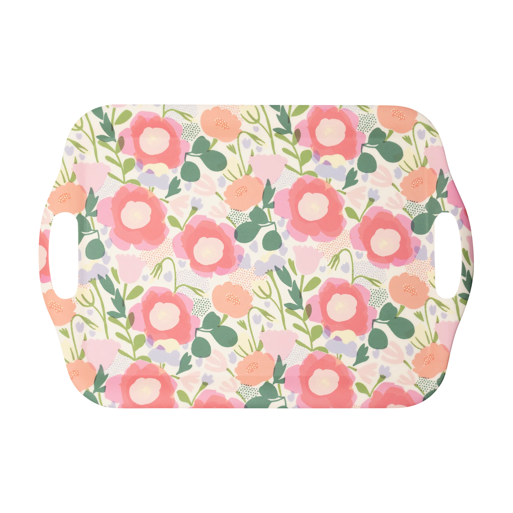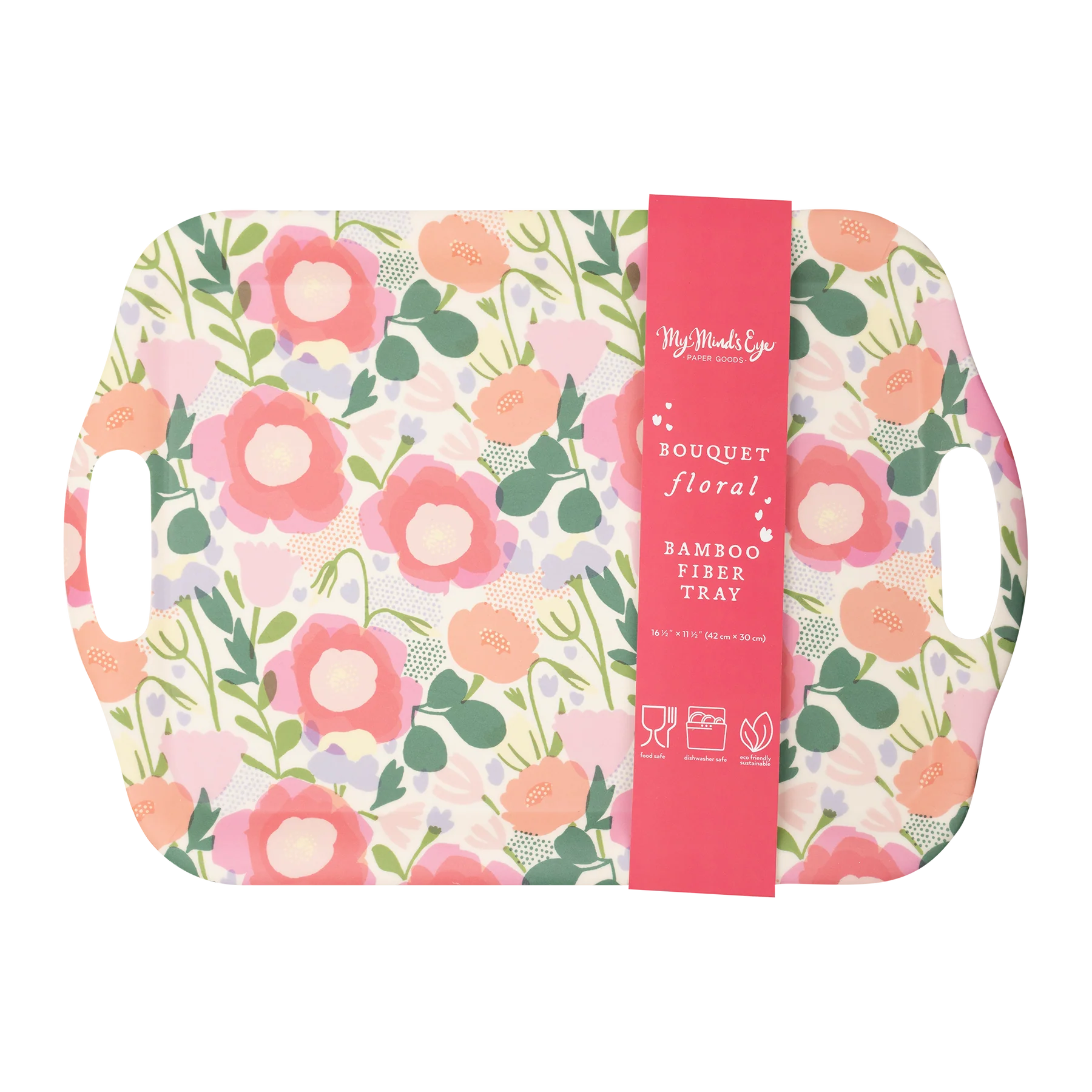 Bring botanical charm to every corner of your home with this versatile bamboo tray. Featuring a delicate floral design, it's equally at home serving refreshments or showcasing your favorite decorative pieces. The generous 16.5" x 11.5" size offers plenty of space, while sturdy handles make it easy to move from room to room. Crafted from eco-friendly bamboo, it's food safe and dishwasher friendly—just skip the microwave. A stylish, sustainable addition that celebrates nature's beauty.