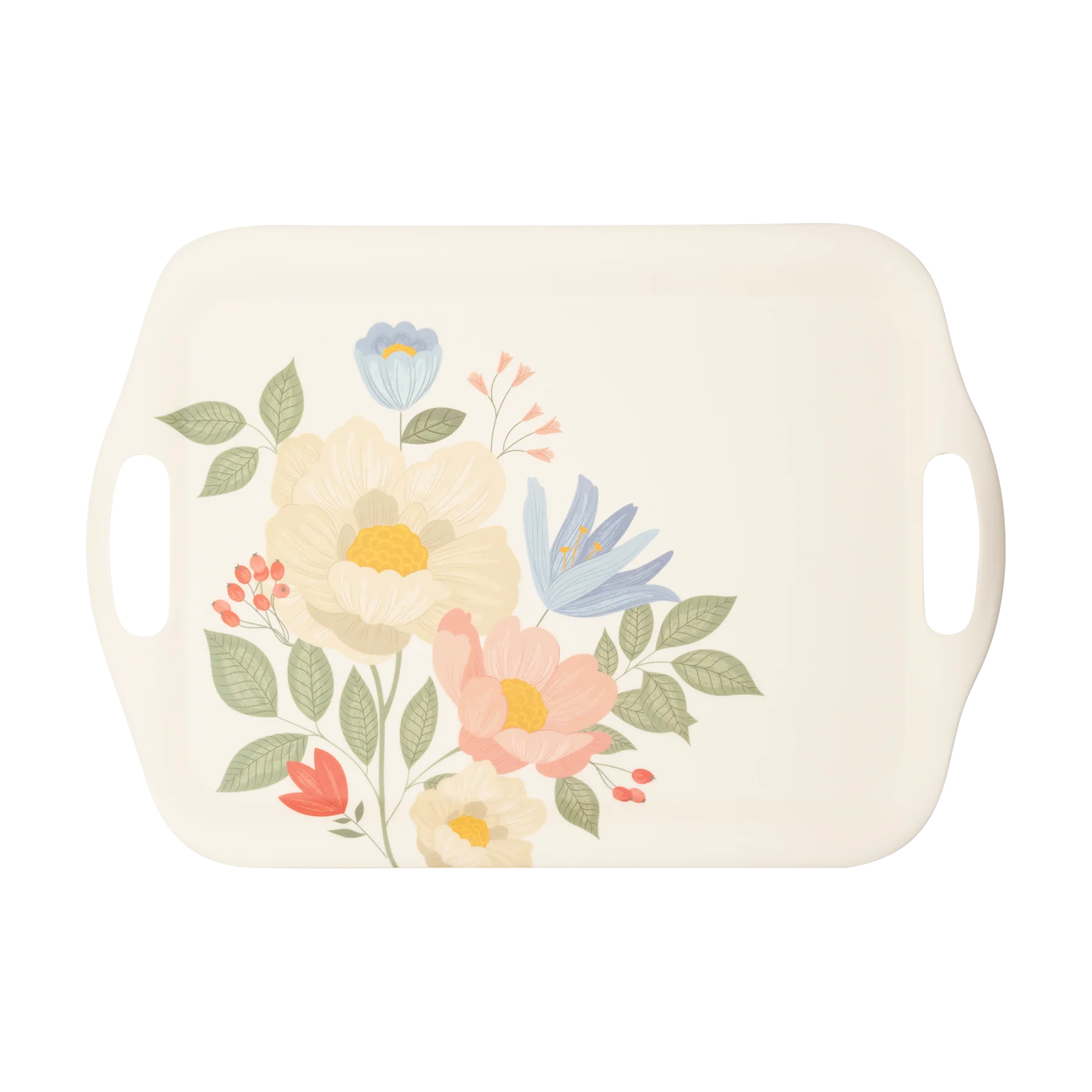 Welcome spring into your home with this charming bamboo tray. A delicate floral motif adorns the corner, adding a fresh, botanical touch to any room. Whether you're arranging appetizers for guests or corralling everyday essentials, this practical piece keeps things organized in style. Lightweight yet durable, it's the perfect blend of function and flair for a home that celebrates the season.