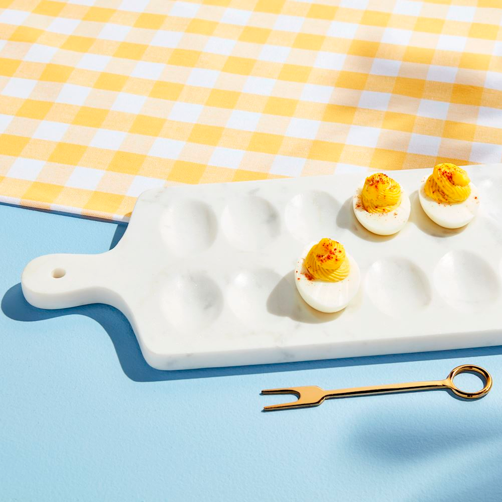 Marble Deviled Egg Board Set with Brass Serving Fork